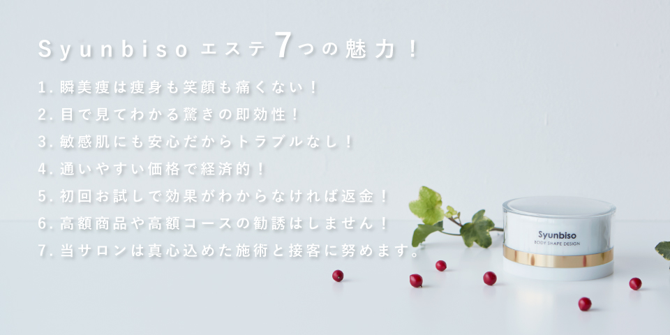 Syunbiso(瞬美痩) サロンメニューついて